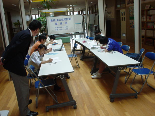 写真は7月に行政視察で訪れた秋田市立御所学院です。職員室の横に多目的スペースがあり、学習参考資料もたくさんそろえてあります。いつでも先生に質問できる環境で自主学習・・・いい居場所のようでした。