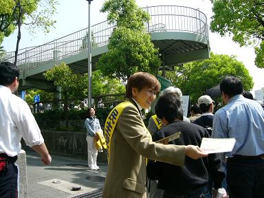 JR中山寺駅近くで街頭演説していると教え子のMさんが街宣車まできてくれて、みずおかさんと3人で記念撮影パシャ! その他にもいろいろな人に出会えました。足を止めてみずおかさんの演説に耳をかたむけて下さる方もありました。6月に入る明日からは、さらに人々の関心をひくようにガンバらなければなりません。