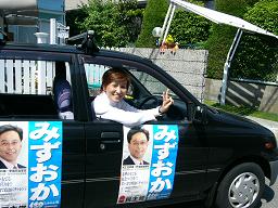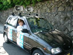 午後からは民主党の政策宣伝車に乗って市内をまわりました。