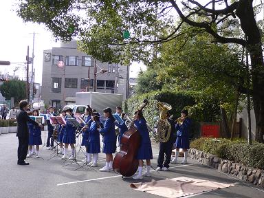 オープニングは南ひばりガ丘中学校ブラスバンドによる「宝塚讃歌」の演奏でした。冷たい風は吹いていましたが、穏やかな光のなかで「宝塚讃歌」を聴いてすごく気持ちいい朝でした。