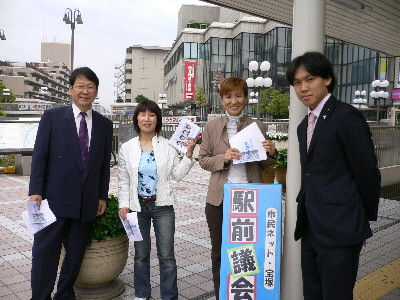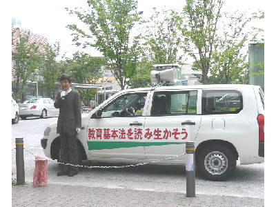 - 今日は朝から一日兵庫県教職員組合の「教育基本法」問題キャンペーン活動で宝塚市内を走り、駅前やスーパー前14ヶ所でのミニ街頭演説とビラ配布をしてきました。