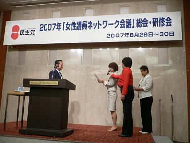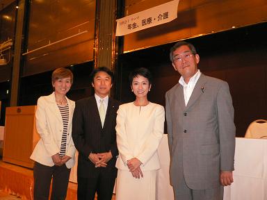 あとから松本剛政調会長も合流。明日民主党人事予定。「2年間政調会長お疲れ様でした!」と乾杯。 その席へあの「片山さつき議員」がひょっこり。松本政調会長とは大学時代からの友人とか。私たちにも愛想よく握手。テレビで見てるより実物はさわやかな感じでした。 赤坂の夜はにぎやかで、ここだけ見てると好景気の風。ますます地方と国とのつながりを密にし、地方の厳しい生活の現状をわかってもらわなければならないと痛感しました。