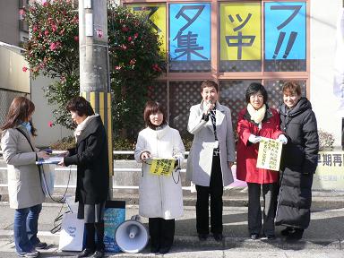 - 昨年末、市長と病院長あてに産婦人科早期再開を求める要望書を提出しました。しかしその後も「まだまだ市民に呼びかけ続けていこう!」と署名活動を行っています。