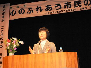 午後は西公民館で開かれた、「Bブロック・心のふれあう市民のつどい」へ。 仁川・良元・高司・宝塚第一・西山・逆瀬台・末成・光明・各小学校児童の人権標語の紙上発表と、人権啓発作文朗読がありました。子どもたちの素直な感性は、大人の気づかない視点を教えてくれます。