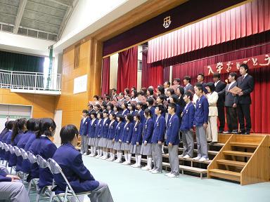 在校生と教職員が「校歌」を披露。春夏秋冬を歌った素敵な校歌です。