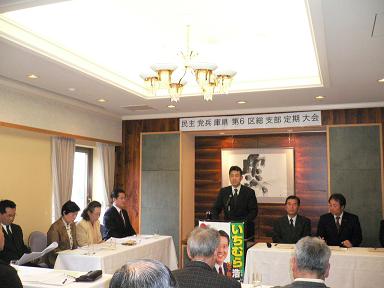 今日は「民主党兵庫県連第6区総支部・2008年定期大会」が宝塚ワシントンホテルで行われました。07年活動報告と会計報告の後、08年活動方針・予算・役員選出について審議し決定しました。