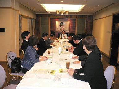 右から(一井暁子岡山県議・梶川幸子広島県議・井戸まさえ兵庫県議・白石恵子島根県議・角智子松江市議・&宝塚市議の北野 後で平木博美神戸市議も合流)