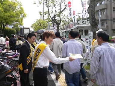 朝から、神戸・大倉山公園野球場で開かれた「第79回メーデー兵庫県神戸中央会場の集い」に参加しました。 会場入り口で、集会に参加するみなさんに民主党のチラシを渡してご挨拶しました。 また、国会議員からはホットな国会報告演説などもありました。