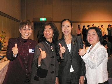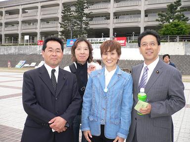 ※伊藤県議会議員、水岡事務所の張田さん、水岡参議院議員とパチリ ※福田首相デコレーションもありました