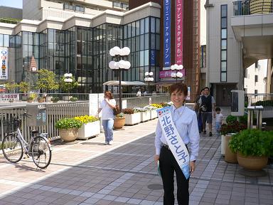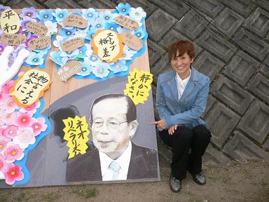 それから、今日からトップページの写真が変わったのにお気づきですか? 選挙のときのちょっときどった写真から、「いつもの私」にもどりました。よろしくお願いします。 花の道で撮影した写真で、バックに宝塚大劇場が入っているのが気に入っています。