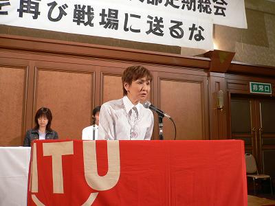 前後しますが、何人かの国会議員からのご挨拶と国会報告もあったのですが、そのなかで次の2点がとても嬉しい報告でした。 @視覚しょうがいのある子どもたちが使う「拡大教科書」の無償化法案を民主党が提案し実現の見通しだとのことです。やったね!! Aクラスター爆弾禁止条約締結へ 「オスロ・プロセス」の合意をめざしたダブリン会議。日本は防衛省などの反対が強く「部分所有」主張していました。しかし、被人道兵器の廃絶をめざす参加国の勢いに押され、最終的に福田首相の判断で署名し「全面禁止」に合意しました。そして100カ国以上の賛同を得て条約が締結される運びになったのです。今後、日本も保有する全てのクラスター爆弾を廃棄することになり、軍縮の一歩を踏み出します。 今回は首相の英断に拍手!です。