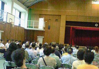 授業参観の後、体育館でタウンミーティングが開かれました。