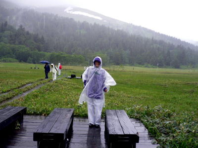 今年、私は環境調査特別委員会の委員長になりましたので、宝塚市環境基本計画にもとづいて、市内の自然環境の保全について調査します。規模は小さいけれど、丸山湿原や松尾湿原の保全が大きな課題なのです・・・・それで、前から一度行ってみたかった「尾瀬」に行ってきたのです。あいにくの雨でしたが、木道を歩きながら「自然保護」の大切さを確かに学ぶことができたような気がします。