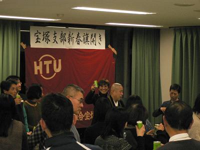 - お昼は兵庫県教職員組合の本部、夜は宝塚支部の旗びらきでした。こちらは質素にお茶で心合わせ♪