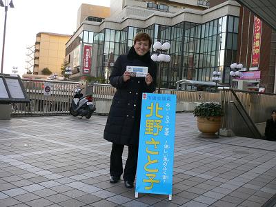 雪がチラチラする寒い朝で、手がかじかみ最後のほうはおはようございますの声まで震えてしまいました。でも、「がんばってますね。」とか「民主党に期待しています。」と声をかけてくださった方があり、心はポカポカでした。