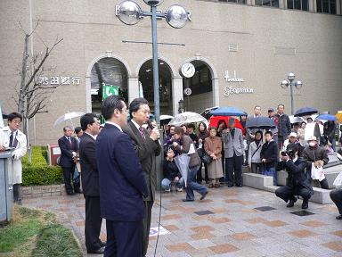 - 民主党の鳩山由紀夫幹事長が伊藤さんの応援のため宝塚に来られ、逆瀬川駅前と宝塚駅前で街頭演説が行われました。