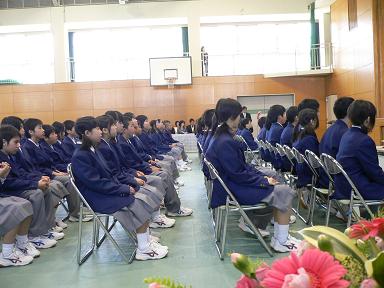 大きな制服がやっぱり可愛いし、とても落ち着いた様子で安心しました。 式の最後に恒例の在校生と教職員による校歌の披露が行われ、いい感じでした。