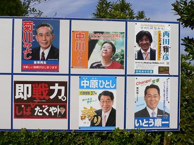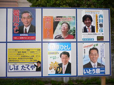 耳をすませば聞こえてくる選挙カーのマイクの声。自分が乗っているときは必死でわからないことですが、 「がなりたてられるのはしんどいな」 ・・でもあんまり落ち着いていると「元気がないな」となるし、難しいものです。