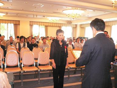 今日は宝塚市体育協会総会に出席。 写真は今年度の「市民スポーツ賞」を受賞された 和田洋子さんです。全日本シニアソフトテニス選手権大会でシニア女子70歳以上の部で優勝! 現在全日本ランキング第一位とか・・・すばらしいです。 総会終了後の懇親会でも色々交流させていただき有意義なお話もいっぱい聞けました。