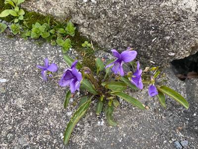 すみれの花を発見! 強くて健気な咲き方に感動します。 今日は乳癌定期検査に行ってきました。 癌の疑いは依然としてはれませんが 今年も無事。よかった! 電車の中では大学の袋を持った学生さんたちの姿もありました。 入学式はないけど、笑顔いっぱいで清々しい。
