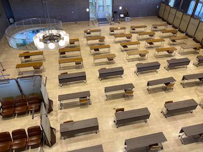 宝塚市役所では 「生活支援臨時給付金プロジェクト・チーム」 を設置。 混み合うG階の生活援護課や障害福祉課の執務を、大会議室や市民ホールで行えるよう準備しています。 | | | 入学式 | - 2020/04/09