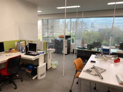 「連合兵庫東部地域協議会」に行ってきました。 机と机をシートで区切り 打ち合わせもマスクで 窓開放 三密を防ぎ 執務中でした。